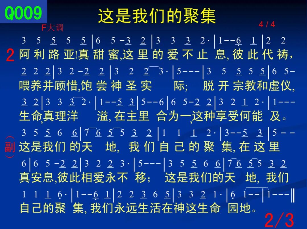 这是我们的天地,我们自己的聚集,在这里真安息,彼此相爱永不移;这是我们的天地,我们自己的聚集,我们永远生活在神这生命园地。