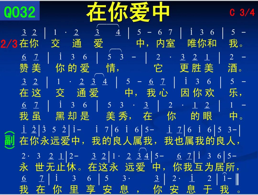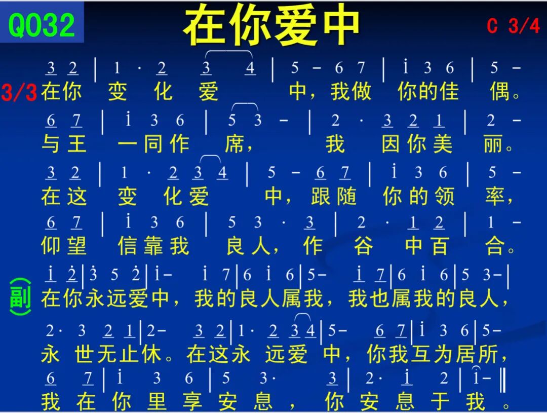 副:在你永远爱中,我的良人属我,我也属我的良人,永世无止休。在这永远爱中,你我互为居所,我在你里享安息,你安息于我。