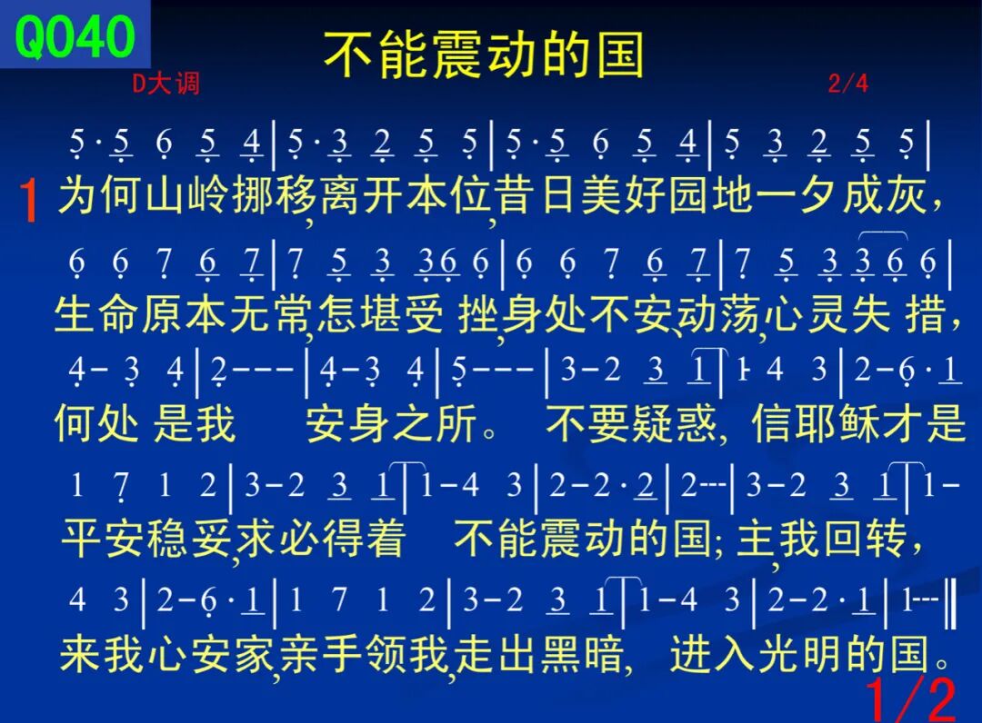 一、为何山岭挪移,离开本位,昔日美好园地一夕成灰,生命原本无常,怎堪受挫,身处不安、动荡,心灵失措,何处是我安身之所。不要疑惑,信耶稣才是平安稳妥,求必得着不能震动的国;主,我回转,来我心安家,亲手领我,走出黑暗,进入光明的国。