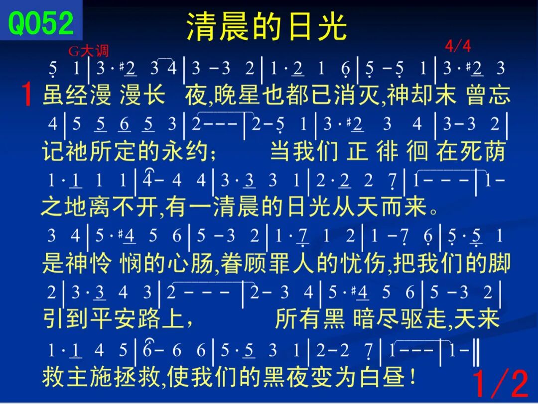 一、虽经漫漫长夜,晚星也都已消灭,神却未曾忘记祂所定的永约;当我们正徘徊在死阴之地离不开,有一清晨的日光从天而来。是神怜悯的心肠,眷顾罪人的忧伤,把我们的脚引到平安路上,所有黑暗尽驱走,我神我主施拯救,使我们的黑夜变为白昼!