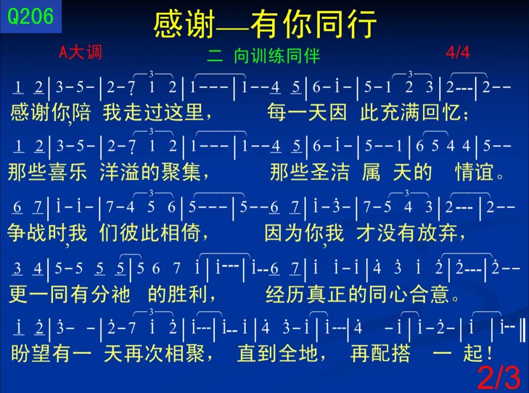 2.感谢你,陪我走过这里,每一天因此充满回忆:那些喜乐洋溢的聚集,那些圣洁属天的情谊。争战时,我们彼此相倚,因为你,我才没有放弃,更一同有分祂的胜利,经历真正的同心合意。盼望有一天再次相聚,直到全地,再配搭一起!