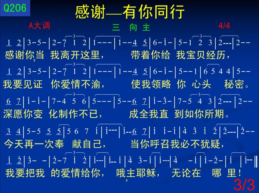 3.感谢你,当我离开这里,带着你给我宝贵经历,我要见证你爱情不渝,使我领畧你心头秘密。深愿你变化制作不已,成全我直到如你所期。今天再一次奉献自己,当你呼召我必不犹疑,我要把我的爱情给你,哦,主耶稣,无论在哪里!